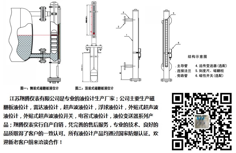 磁翻板液位計是根據浮力原理和磁性耦合作用原理工作的。當被測容器中的液位升降時,液位計主導管中的浮子也隨之升降(見圖一)。浮子內的**磁鋼通過磁耦合傳遞到現場指示器,驅動紅、白翻柱翻轉180°;當液位上升時,翻柱由白色轉為紅色,當液位下降時,翻柱由紅色轉為白色,指示器的紅、白界位處為容器內介質液位的實際高度,從而實現液位的指示。精密的紅白磁性翻柱,普通型(常溫)采用塑料樹脂;高溫型采用精密氧化鋁陶瓷燒結工藝,鎧入高溫**磁鋼耐溫可達520℃。