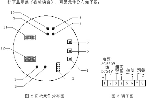 4.此時“預警指示燈”、“控制指示燈”和“超高報警燈”全亮,放開握住探極的手,上述三只燈全熄滅,表示控制器工作正常。